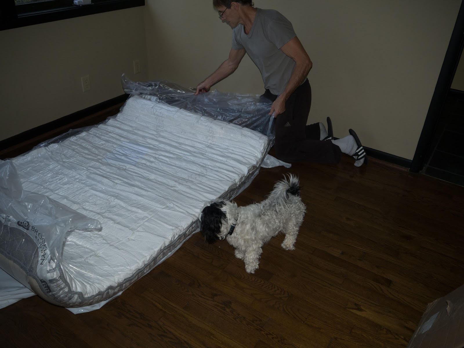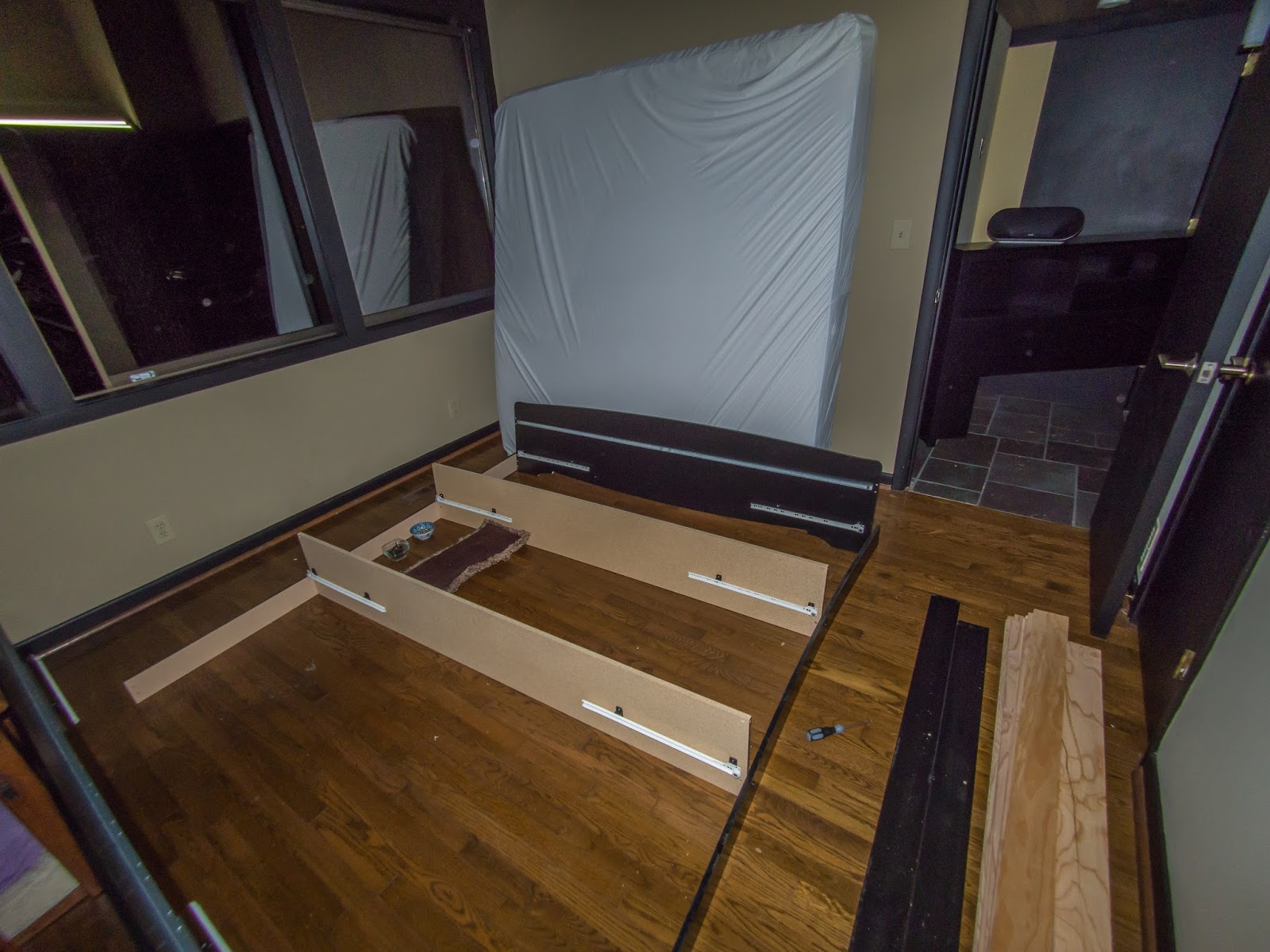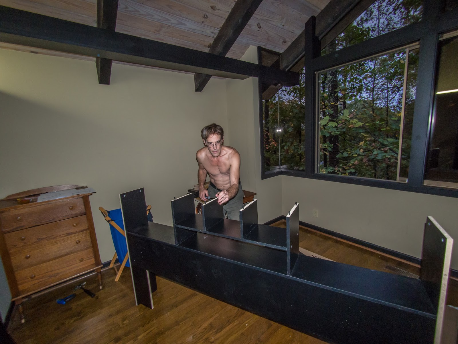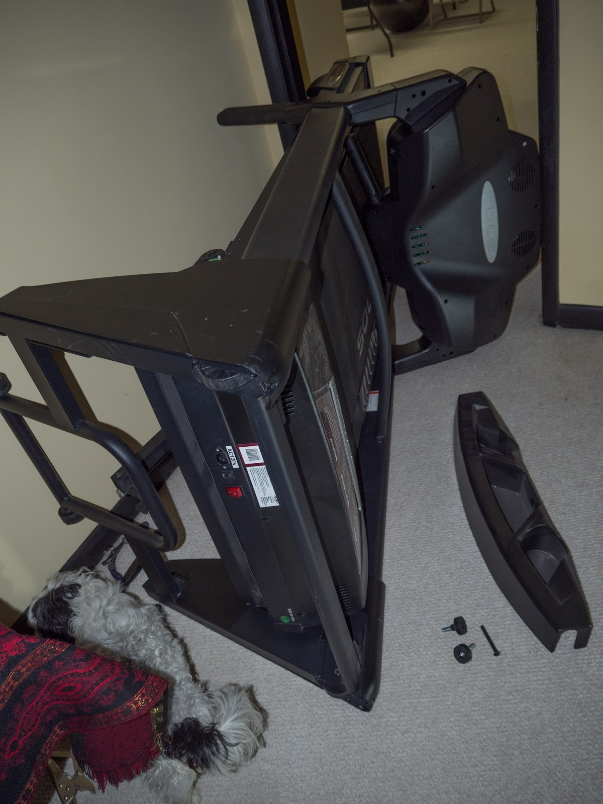 Another project was to move the treadmill … after much agitation, I determined this was the only orientation to get it to fit through that door. That treadmill will be buried in that room: