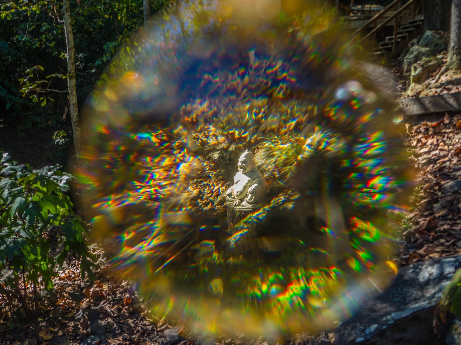 Buddah Trough the Looking Glass (one of Helen’s round deck hanging crystals):