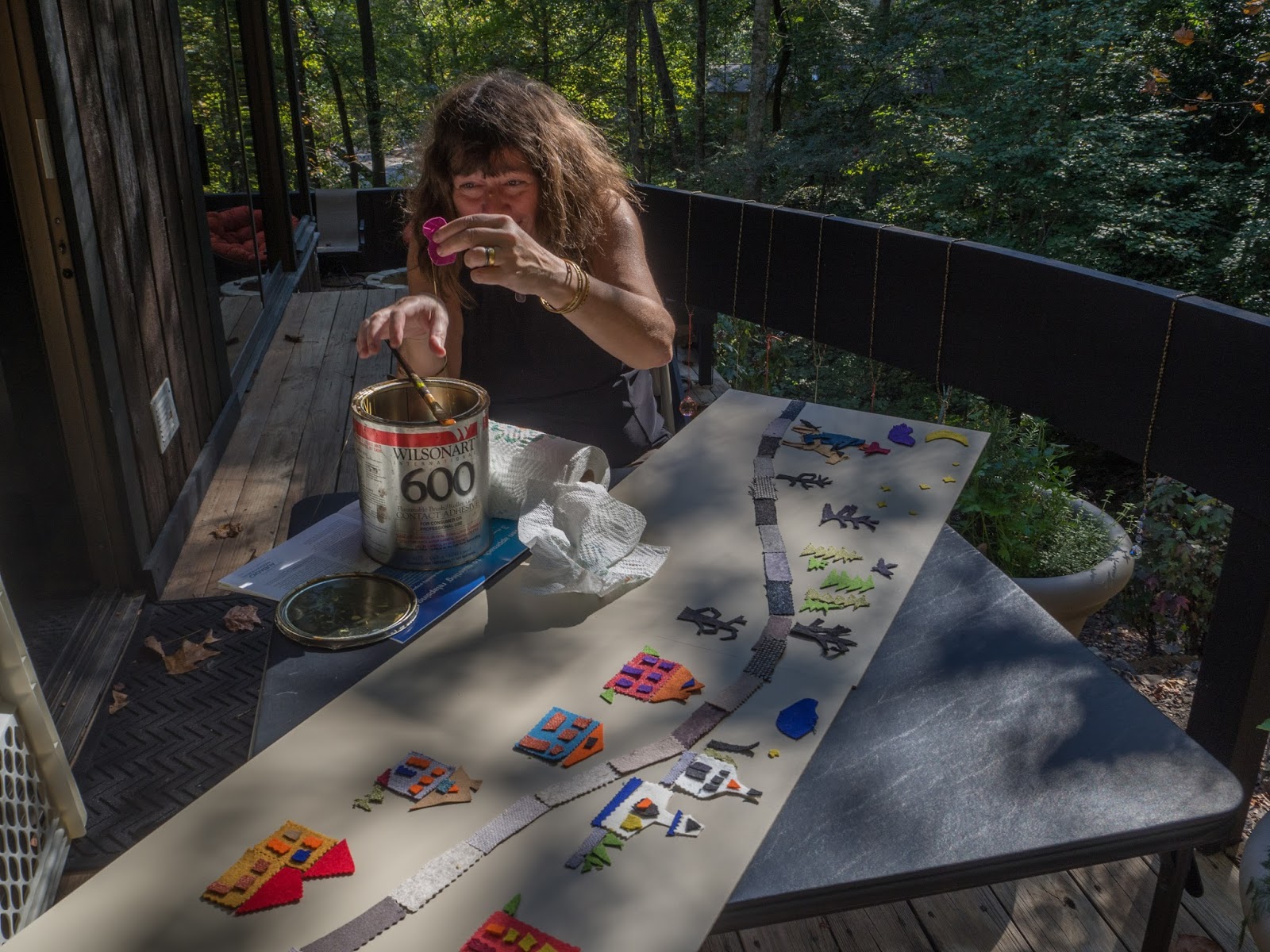 Helen did a couple of Arts projects. This one used fabric samples from a couch we never bought: