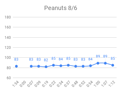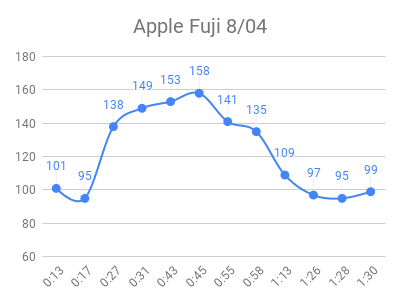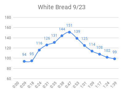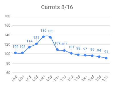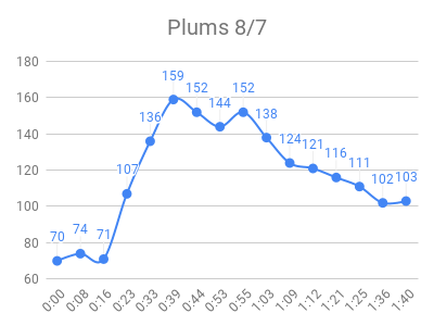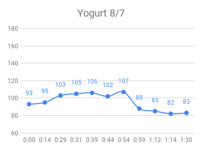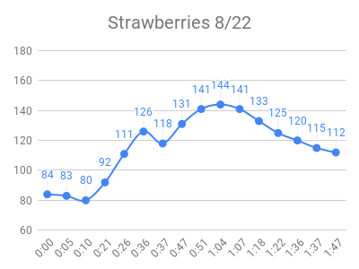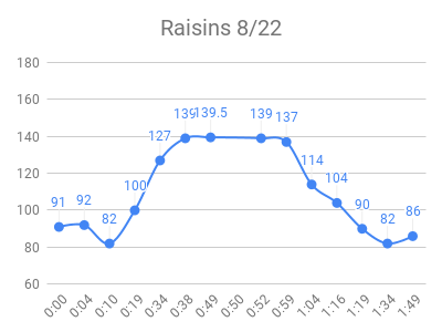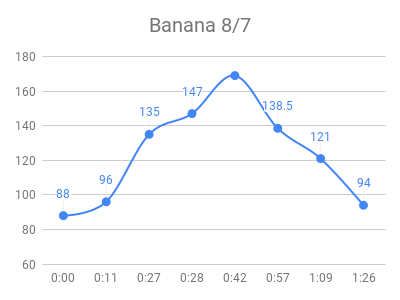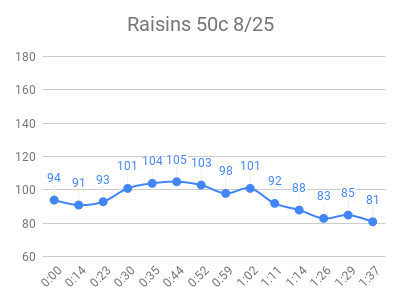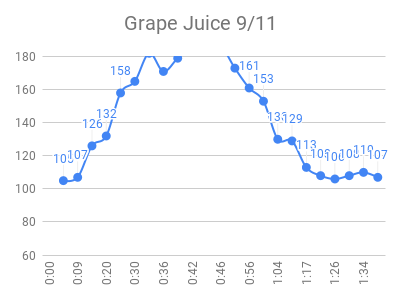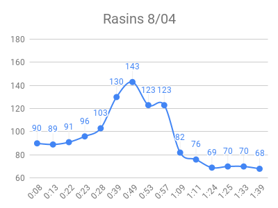 As expected, the high sugar foods and fruits had the highest peaks. Raisins and grape juice had similar peaks to pure sugar! I used to love raisins 🙁