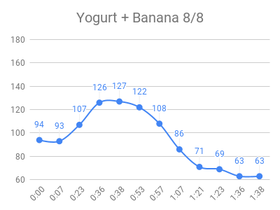 Mixing in a high fat or protein food seems to help blunt the sugar response a little. Here is bananas & yogurt: