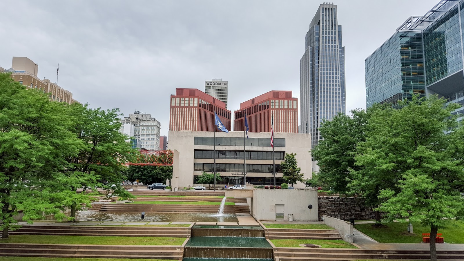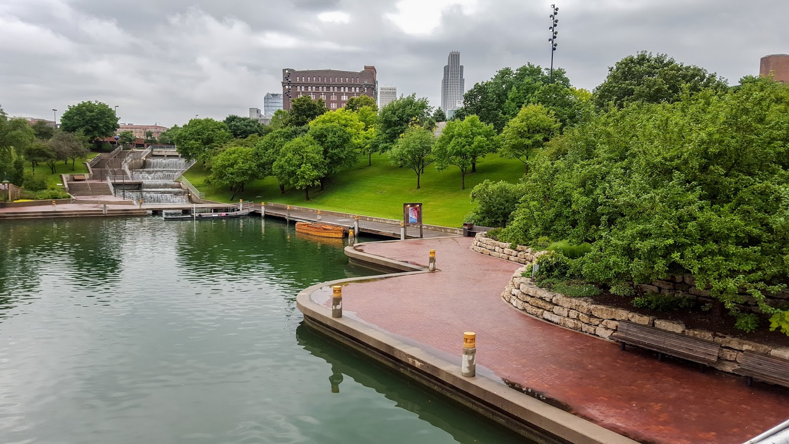 The downtown was nice, with a water park running 4 blocks down to the river: