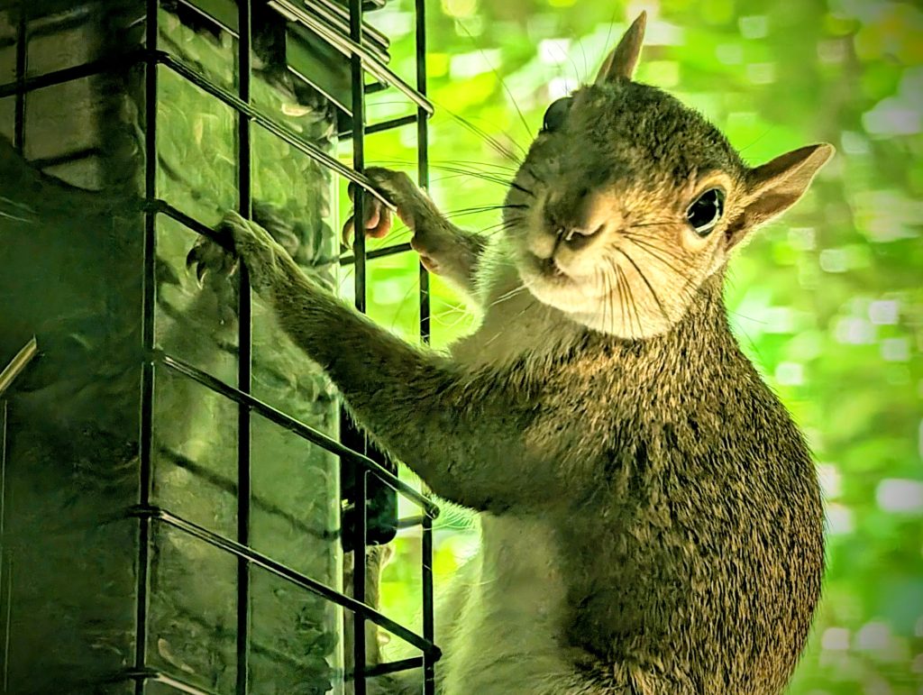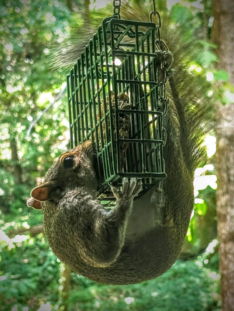 I decided to lose the battle with the squirls and embrace and admire their amazing acrobatics: