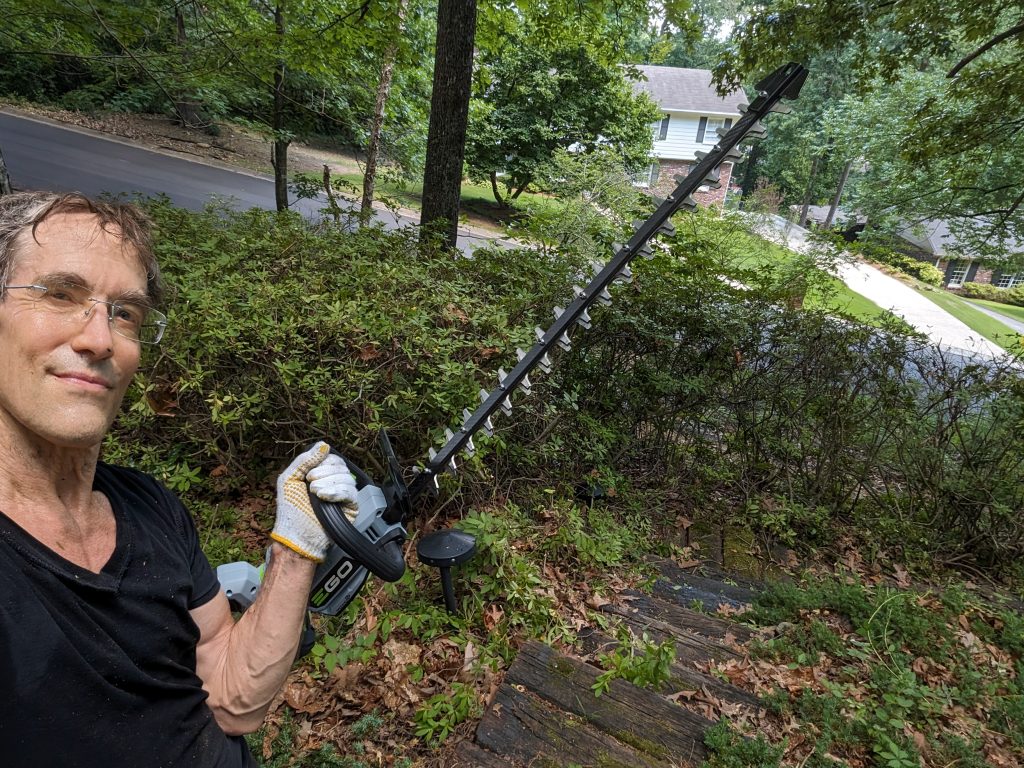 In much less exciting news, I got a new toy. Used it to battle my overgrown, now over pruned, azaleas. I won, barely: