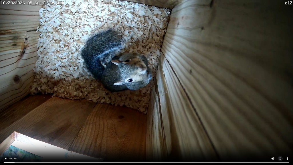 A brave, or maybe stupid, squirrel has been playing around in the new owl box: