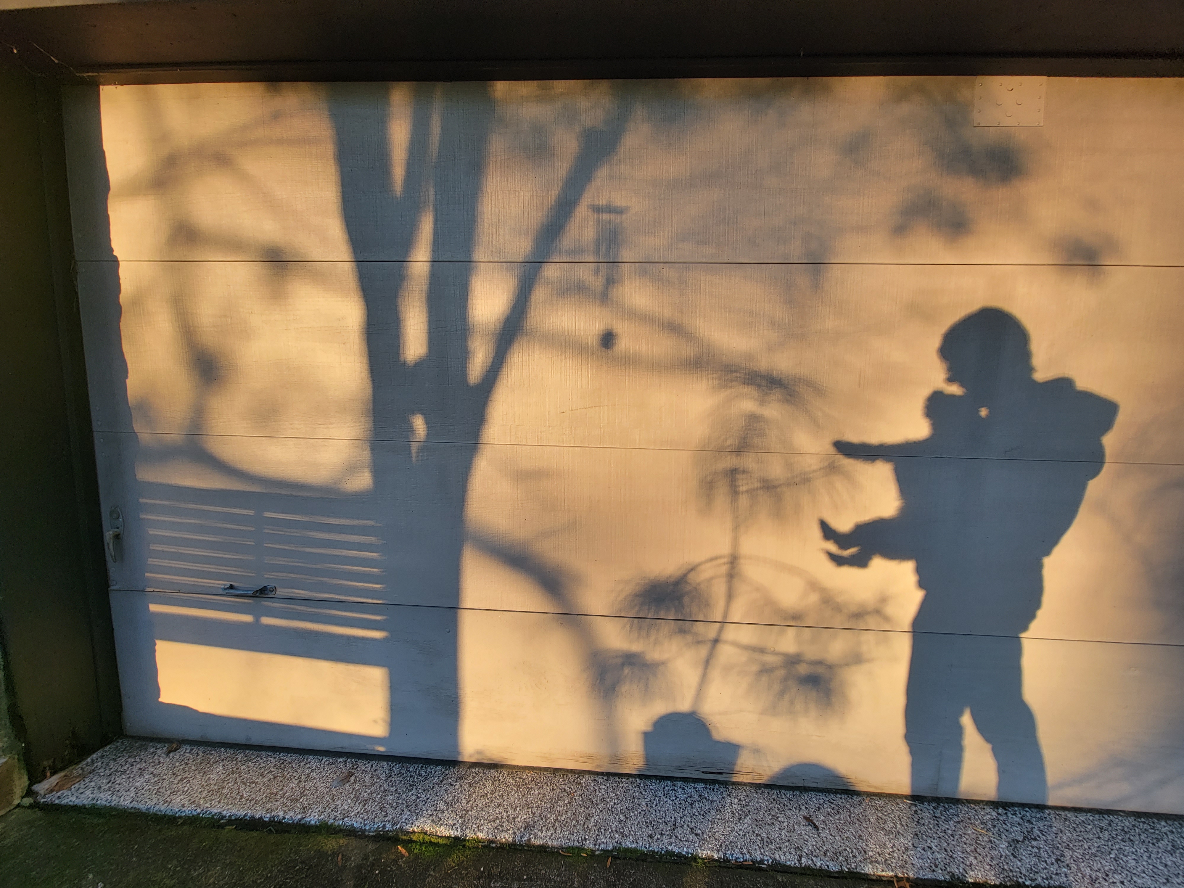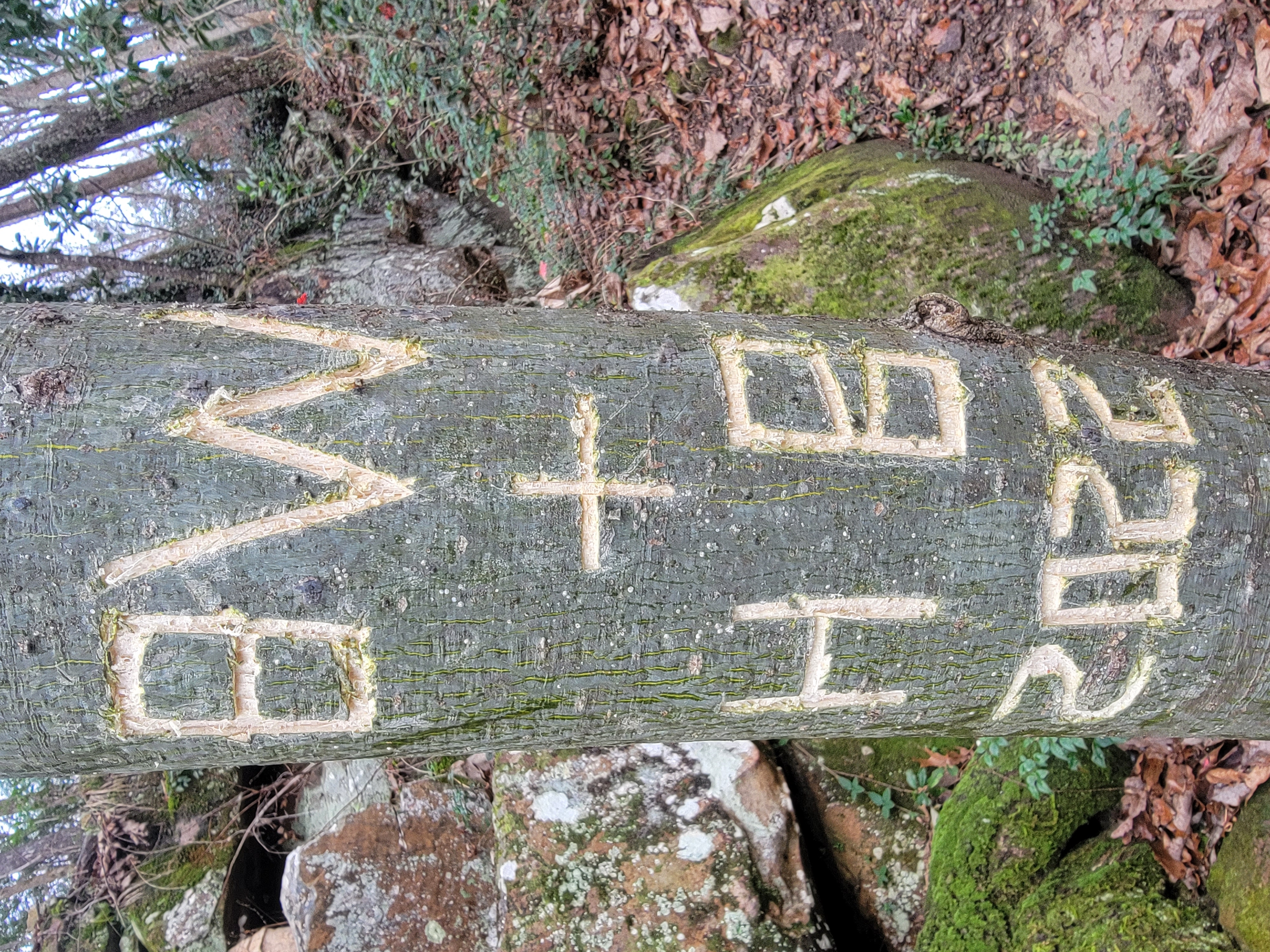 Helen and I had a New Year’s Day tradition of carving our initials into one of our trees. This year, a Chinese parasol tree that has interesting green veins in the bark: