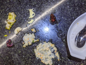 Sometimes they go for the ant bait (Terro), but when they don’t, I concoct my own by adding Borax to various foods.   Helen is not enchanted with my kitchen science experiments: