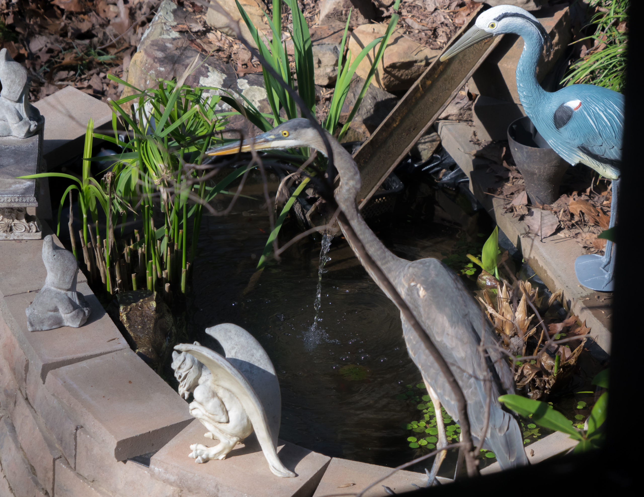This offended Helen greatly, so she bought some alligator and heron decoys, but they were not effective: