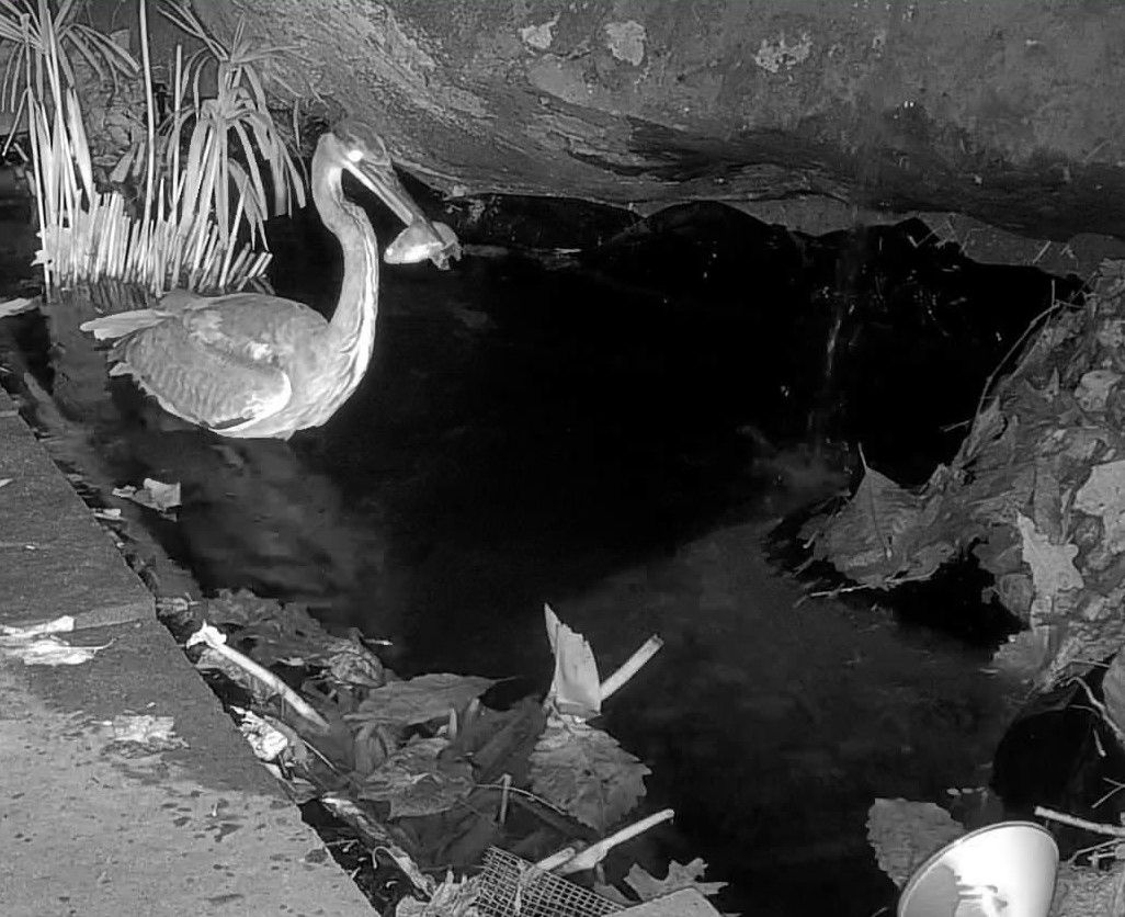 Initially we were enchanted, then we discovered Helen’s beloved little fishes were disappearing. We caught his evil work on our net-cams: