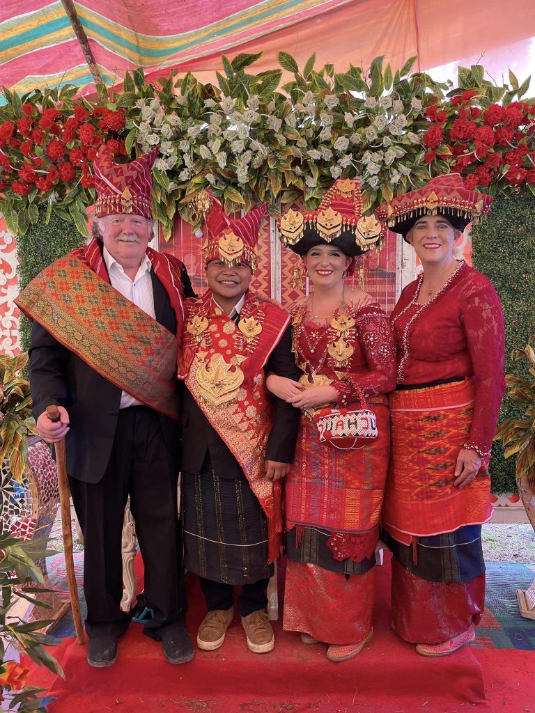 Sister Sue’s daughter, Mikaylie, got married in large wedding in a very remote village of Sumatra: