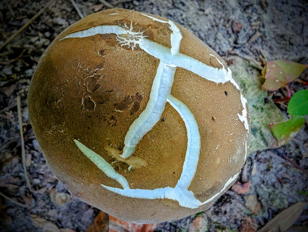Closing with some bugs, shrooms, and artsy photo of a crepe myrtle bark cowboy riding a doughnut while nibbling on a micro earth: