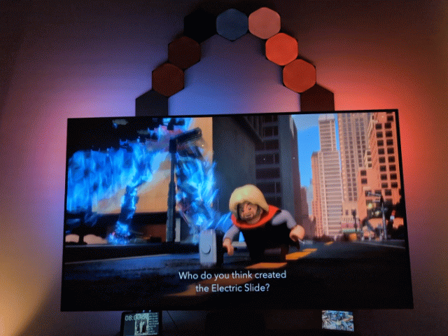 I added some fun lighting to my TV, backlighting to the back of the TV and some artsy lighting above it. It uses a small camera pointed at the TV to make the lighting respond to the lighting of the show: