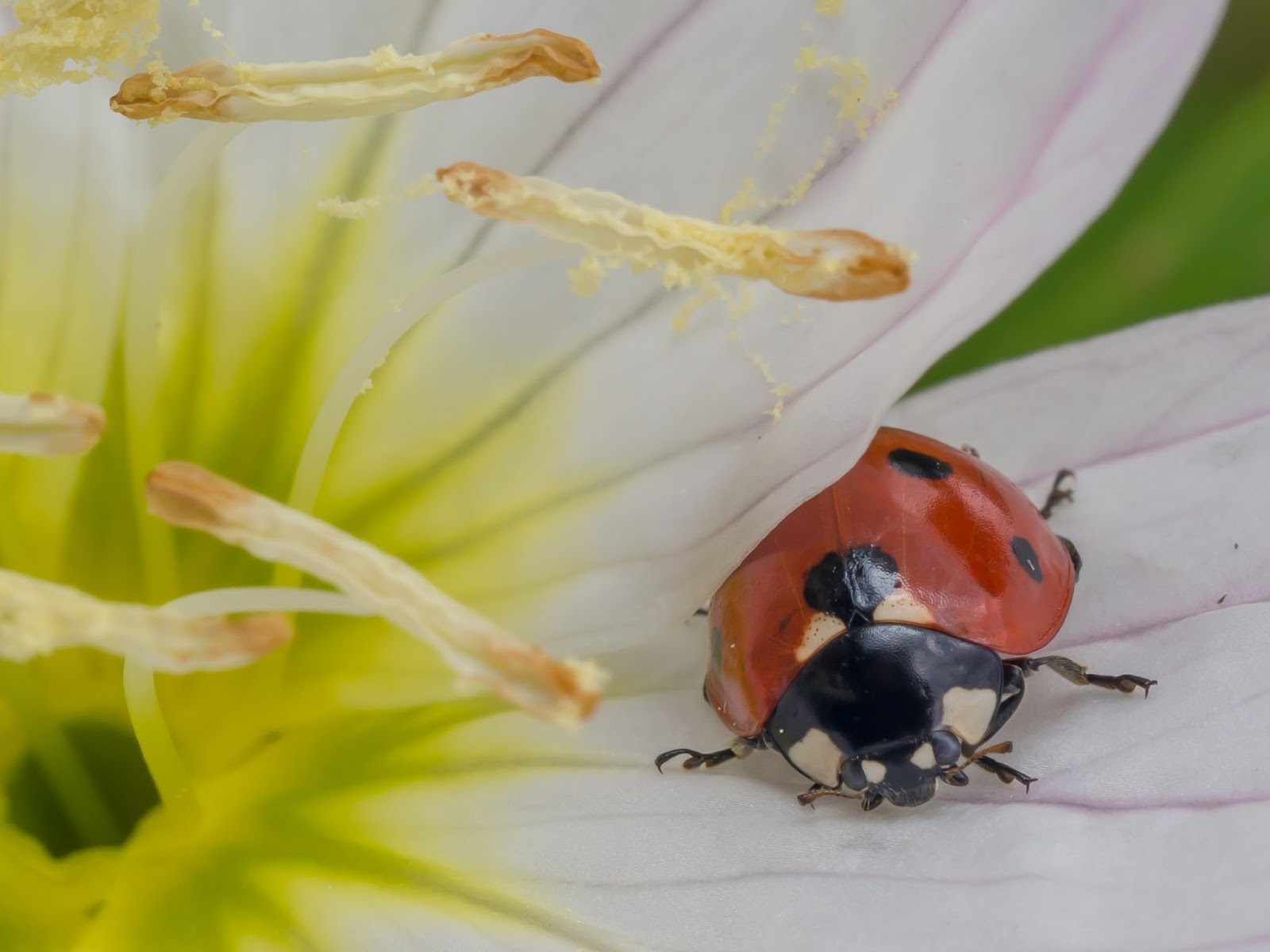 Lady bugs, on the other hand, can balance just fine. I moved this one around to various backyard flowers: