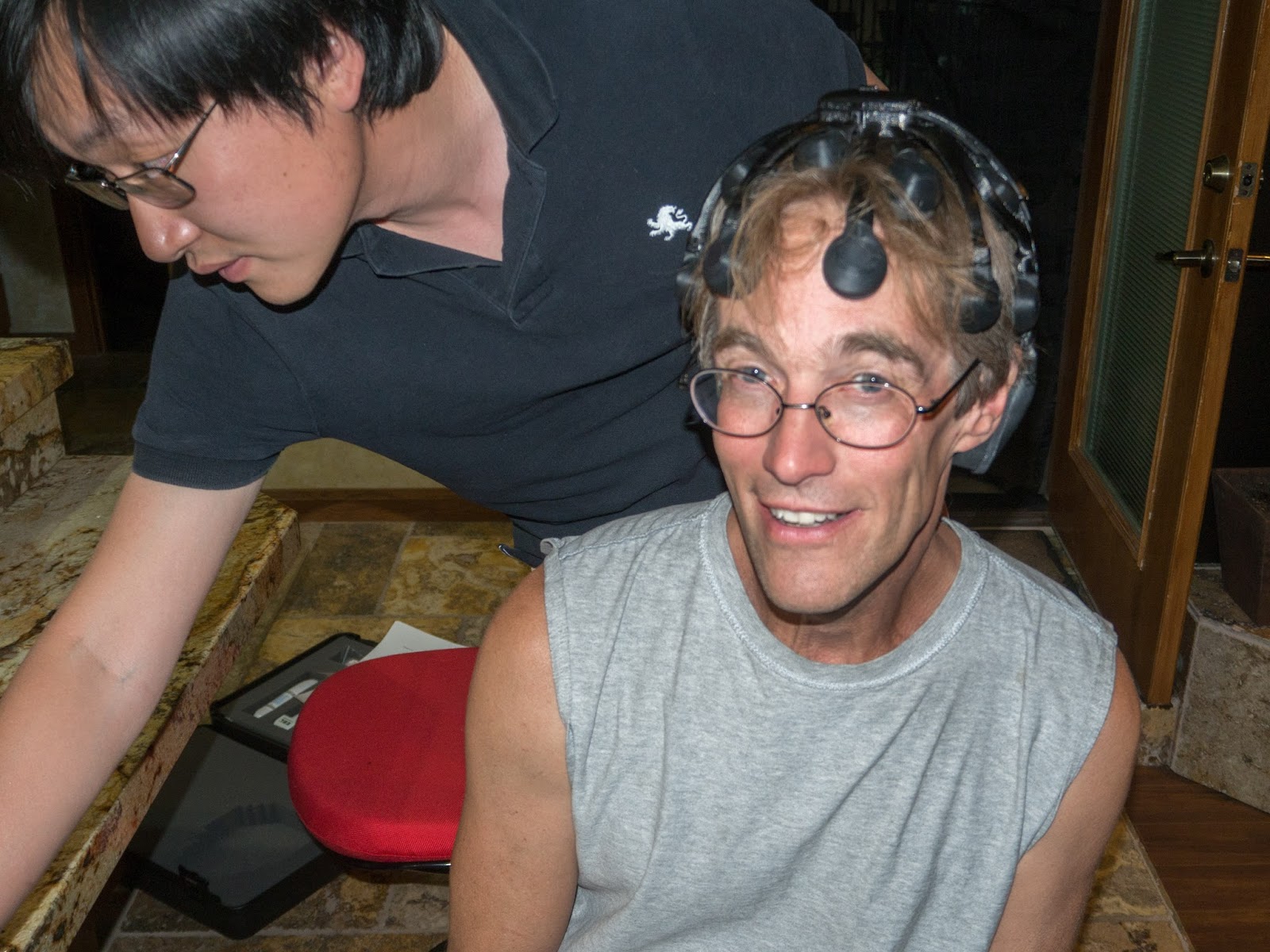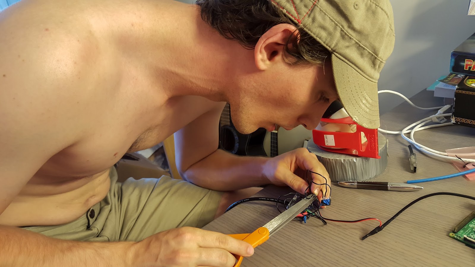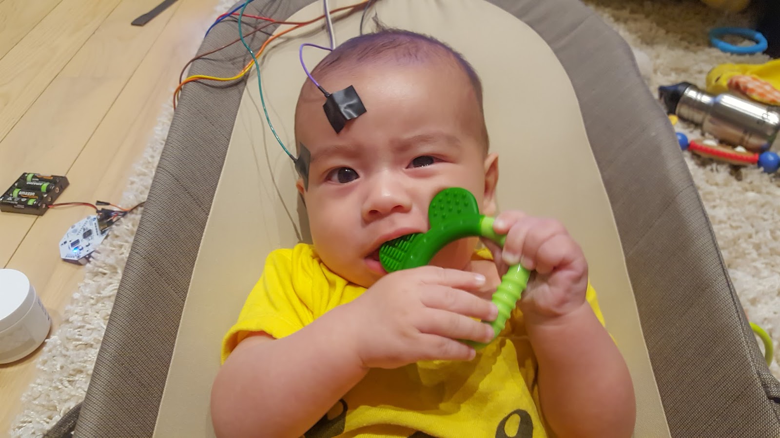 Attaching wet electrodes is the trickiest part … electrician’s tape is not ideal: