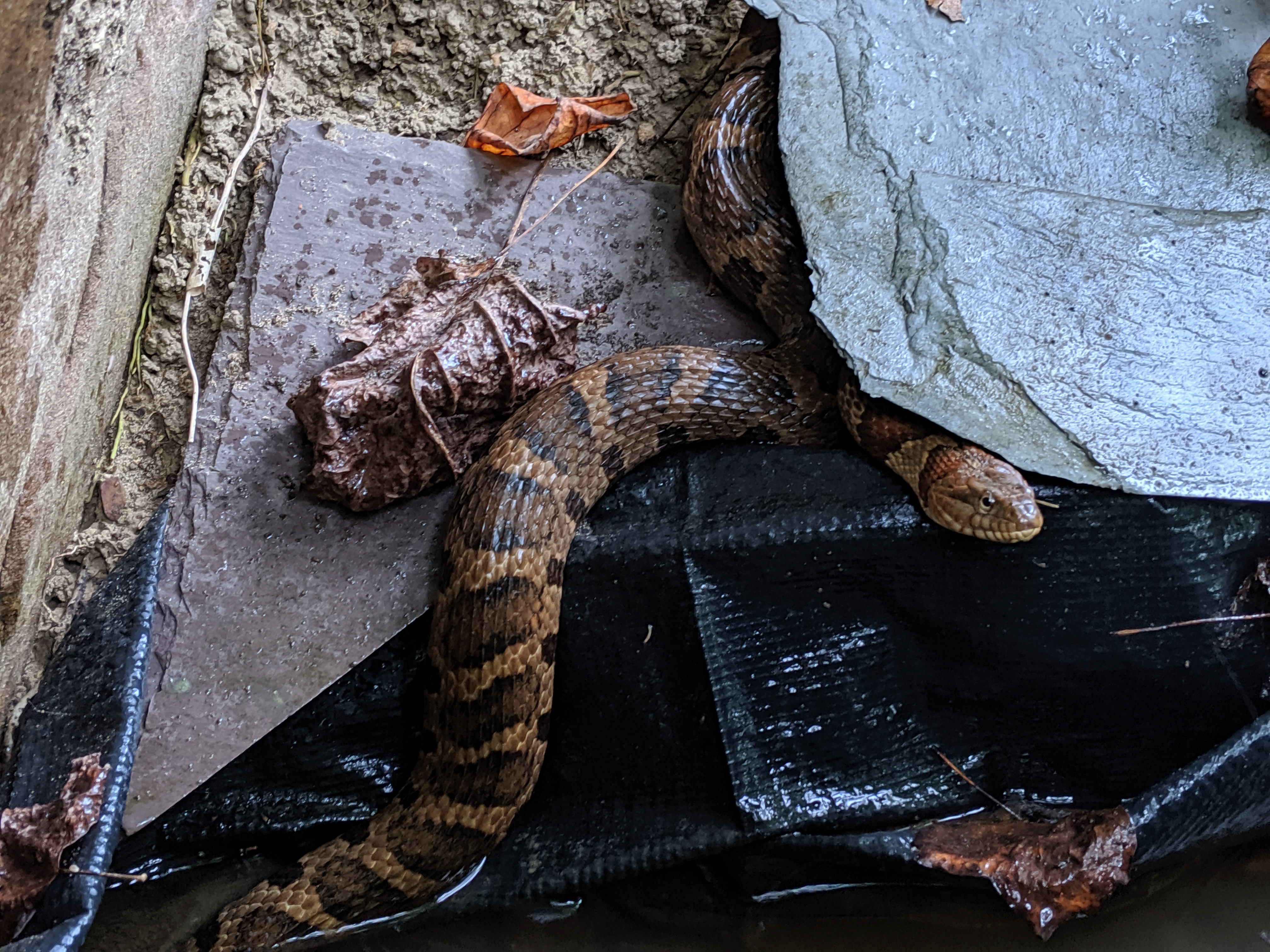Some of our fish have been disappearing. We suspect raccoons and water snakes, like this guy: