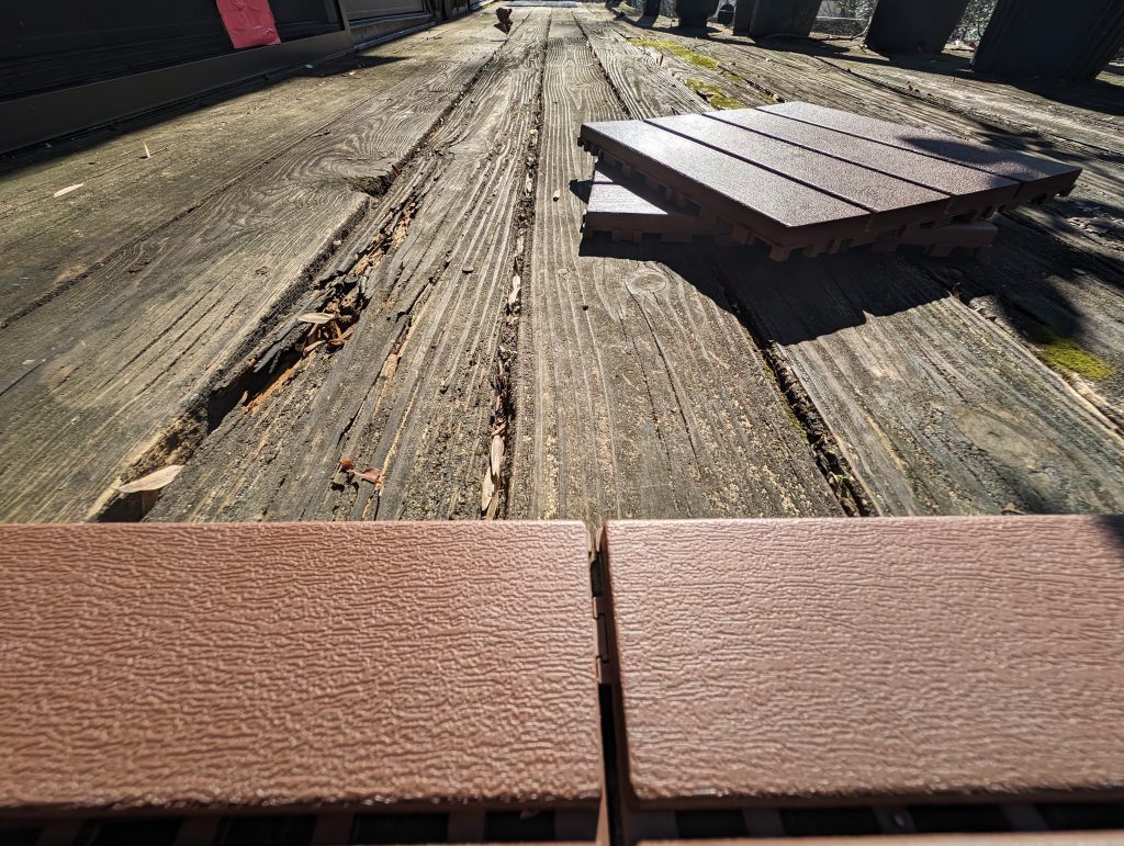 The deck had some rotted spots. Eventually will need replacement, but for now I strategically plasticized it: