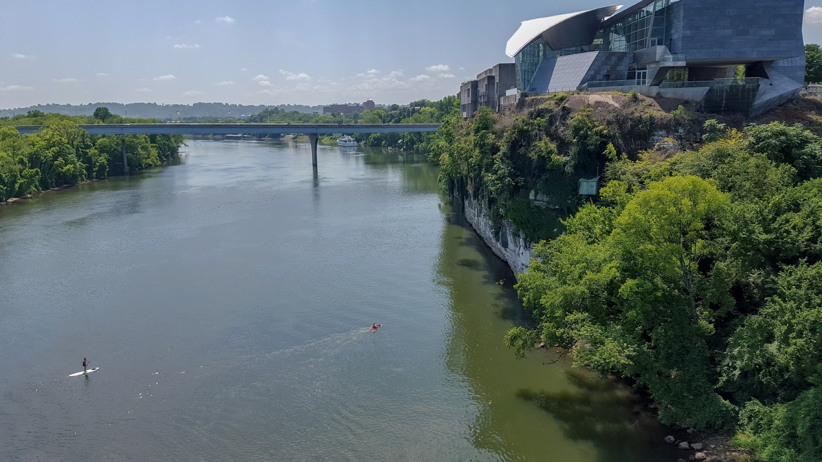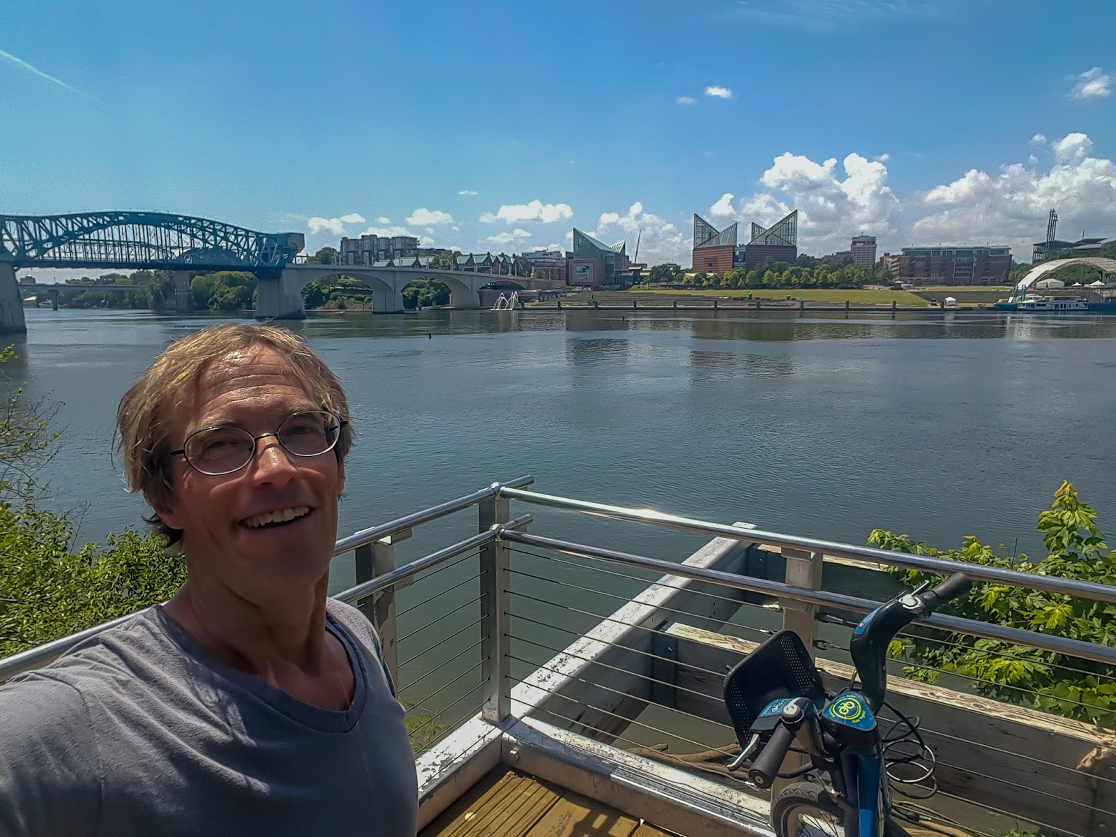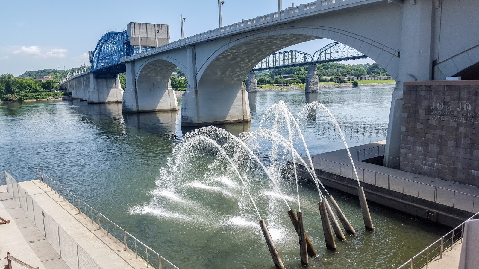 Chattanooga (yes, the city with a Choo Choo train) is a pretty town with a nice big river. That 2nd bridge is the biggest pedestrian only bridge in the US: