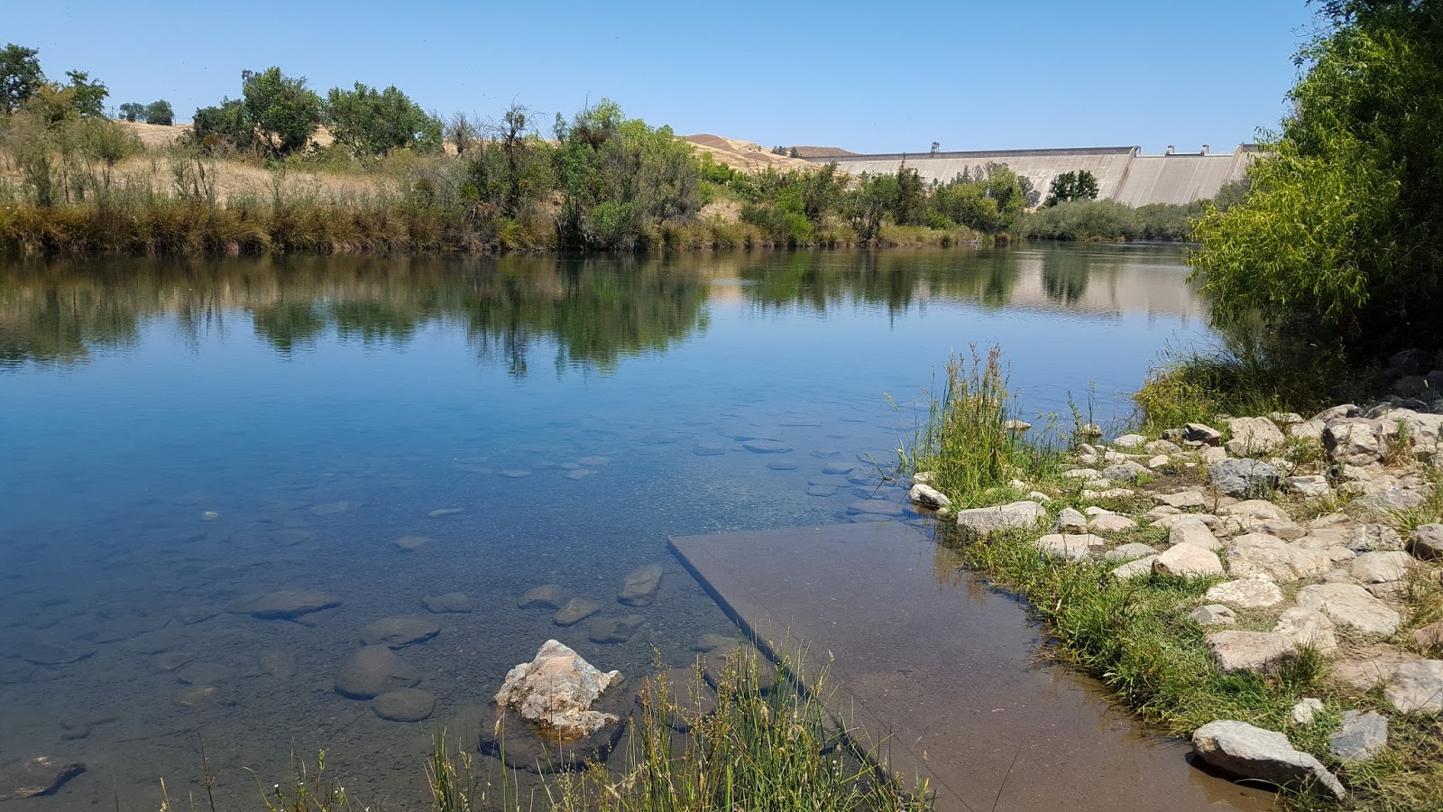 The drought was much talked about. Our Armenian taxi driver figured he would have to leave in a few years if it continued. I found the San Juaquin River still had some water in it, but if it were not for the salmon who spawn below this dam (with the help of a fish hatchery), I’m told it would have been much lower: